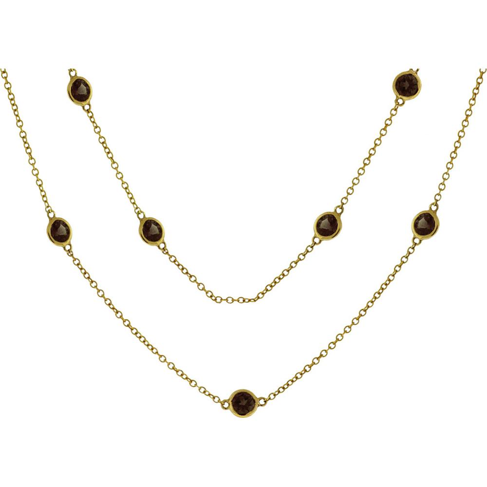 14K Yellow Gold Smoky Quartz Station Necklace with Round 6.90 Carats Total Carat Weight - Royal Jewelry