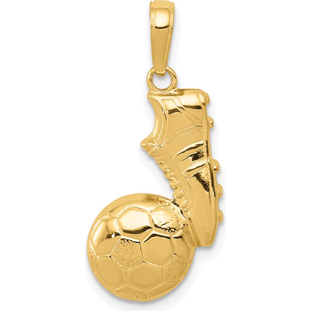 14K Yellow Gold Soccer Ball and Shoe Pendant - Textured Polished Design by Oro Pregiato