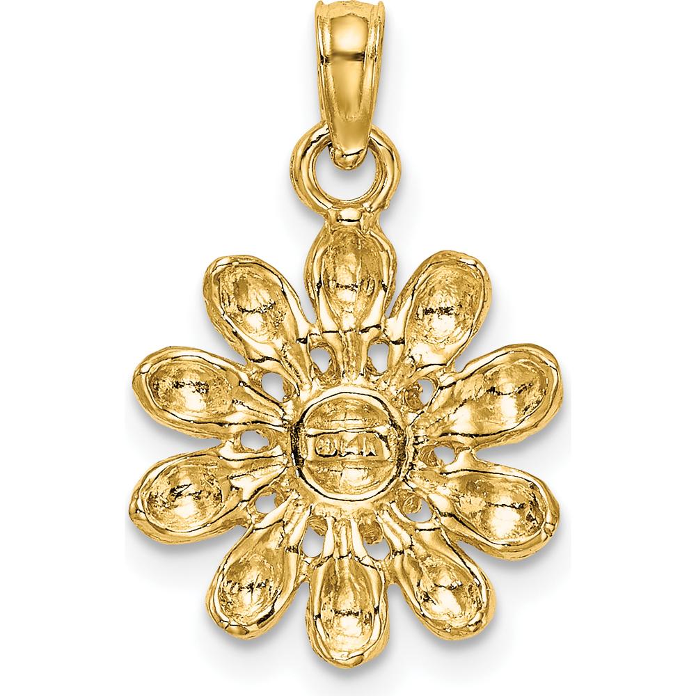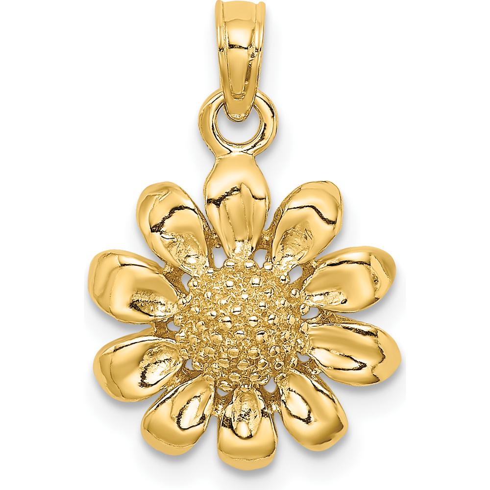 14K Yellow Gold Sunflower Charm Pendant - Textured Flower Design 13.3mm by Oro Pregiato