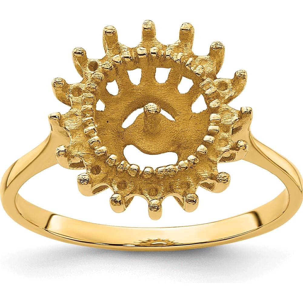 A gentle glow with intention, this 14K gold ring speaks in the language of the sun—bold, radiant, and endlessly alive. Every curve and contour of its design captures a sense of ancient artistry reborn, with a textured crown that feels both sculptural and celestial. Its form evokes the steady rhythm of gears in motion or the petals of a mythical bloom turned golden by light. This is not a ring meant to whisper—it was made to gleam unapologetically, a tribute to the wearer’s inner fire and the elegance of imperfection that makes true beauty eternal.