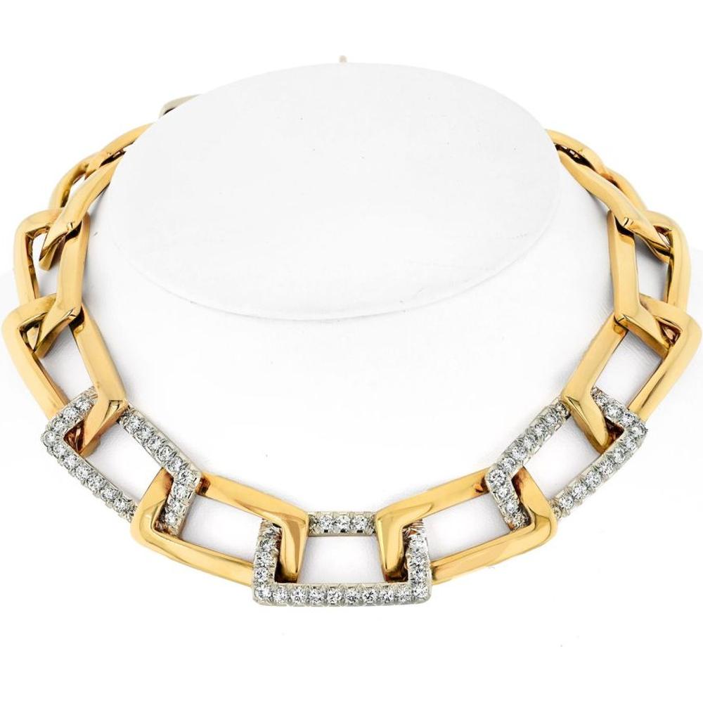 18K Yellow Gold & Platinum Open Link Collar Necklace with 7.00 Carat Pave Diamonds by David Webb - 14.5 Inches