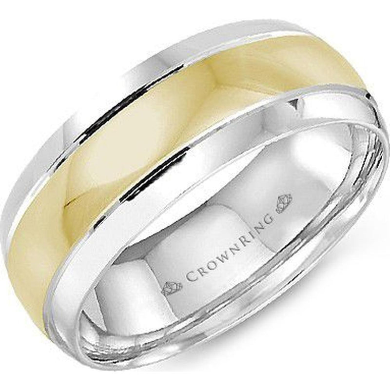 CrownRing Men's Wedding Band - Two-Tone Polished Finish in 14K Yellow Gold and White Gold - 6mm Width from the Classic Collection