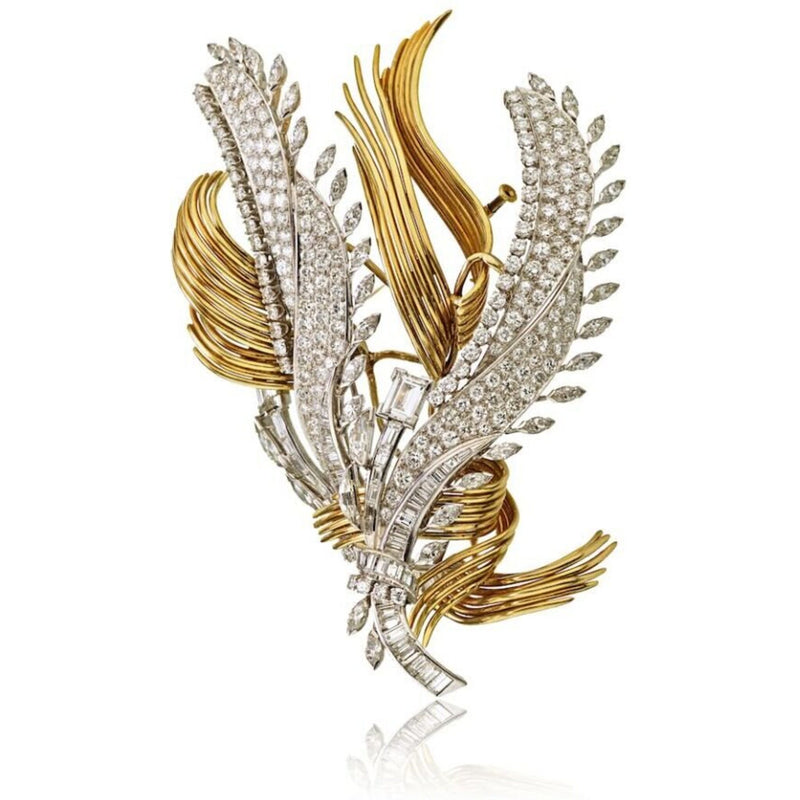 - Of an impressive design this diamond brooch iby David Webb s about 3 inches long and converts into two models: with and without the gold backdrop.