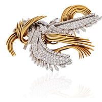 David Webb - Platinum & 18K Yellow Gold 20.00 Carats Diamond Double Clip Convertable Brooch