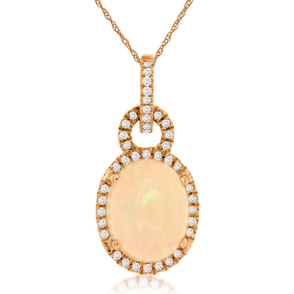 Enchanting 14K Rose Gold Opal & Diamond Halo Pendant
