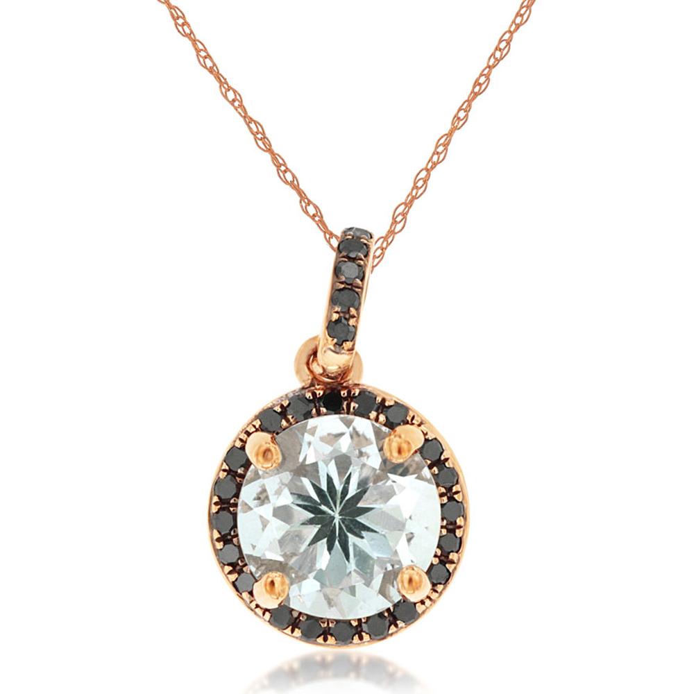 Enigmatic Beauty: 14K Rose Gold Black Diamond and Aquamarine Pendant