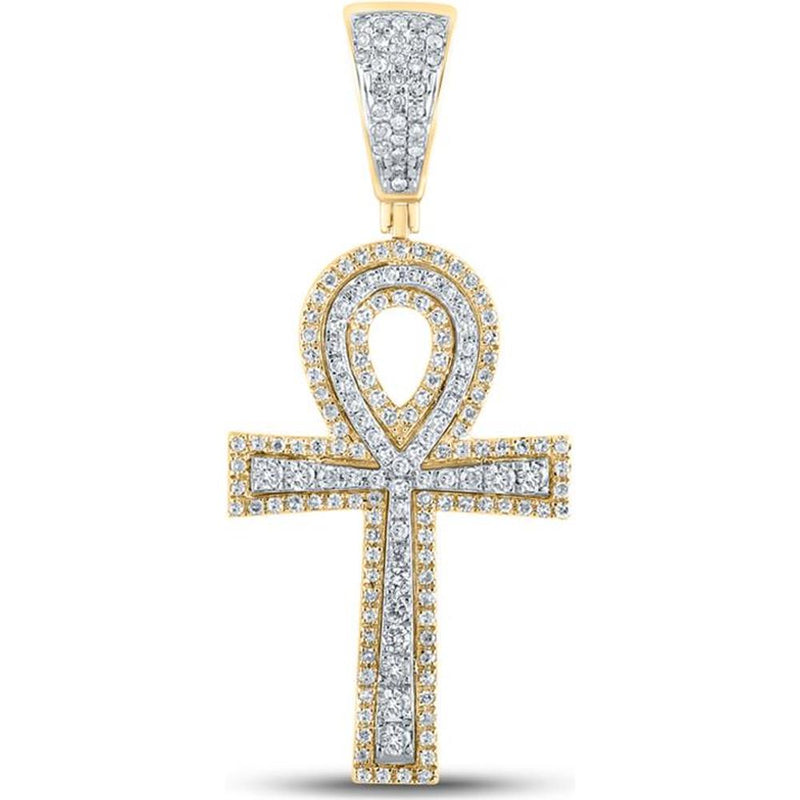 GND 10K Two-Tone Gold Ankh Cross Pendant with Pave-Set Round Diamonds - 0.85 Carat Total Diamond Weight