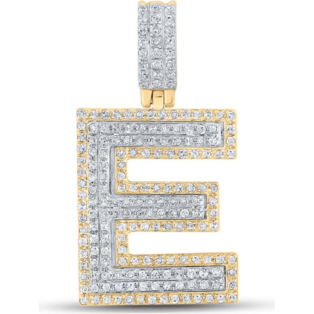 GND 10K Two-Tone Gold "E" Initial Pendant with Pave-Set Round Diamonds - 0.59 Carat Total Diamond Weight