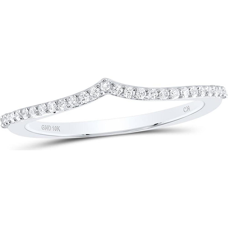 GND 10K White Gold Chevron Stackable Band Ring with Prong-Set Round Diamonds - 1/6 Carat Total Diamond Weight