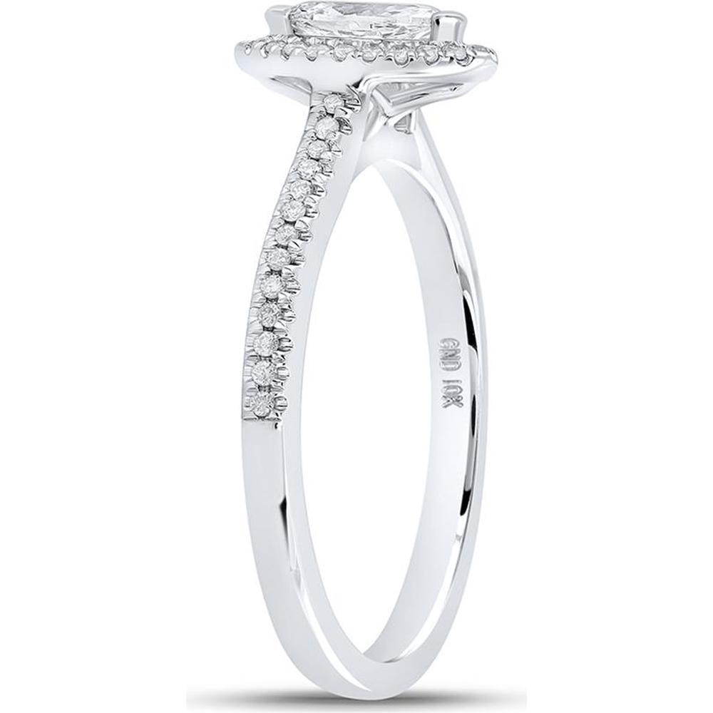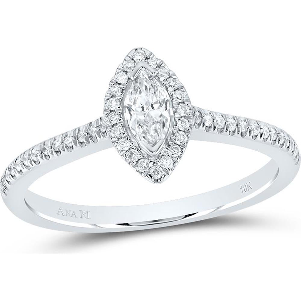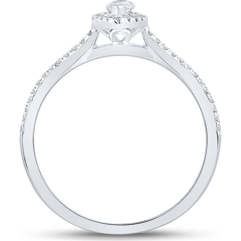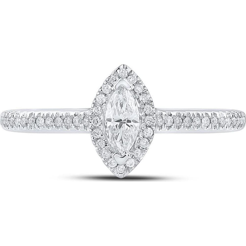 GND 10K White Gold Marquise Diamond Halo Bridal Engagement Ring with Round Diamonds - 1/3 Carat Total Diamond Weight