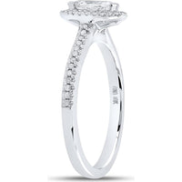 Delight in the splendor of dazzling artistry with this 10K White Gold Marquise Diamond Halo Bridal Engagement Ring, a true testament to elegance and commitment. The centerpiece of this exquisite ring is a striking marquise-shaped diamond, prong-set to capture the light from every angle, revealing a brilliance that symbolizes your love's unique journey. With a total diamond weight of 1/3 carats, this ring is designed for the woman who desires a blend of tradition and modern sophistication.