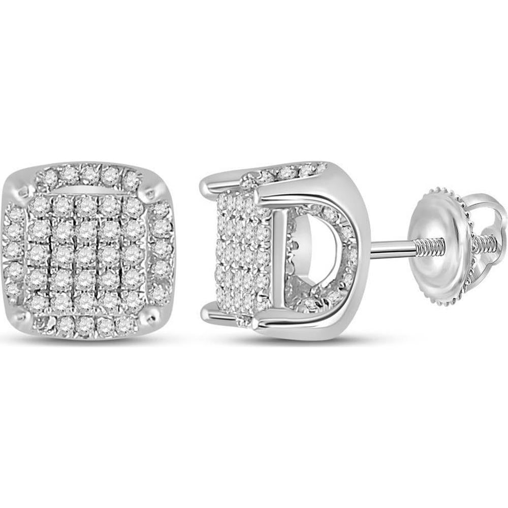 GND 10K White Gold Round Diamond Pave-Set Square Earrings - 1/2 Total Carat Weight