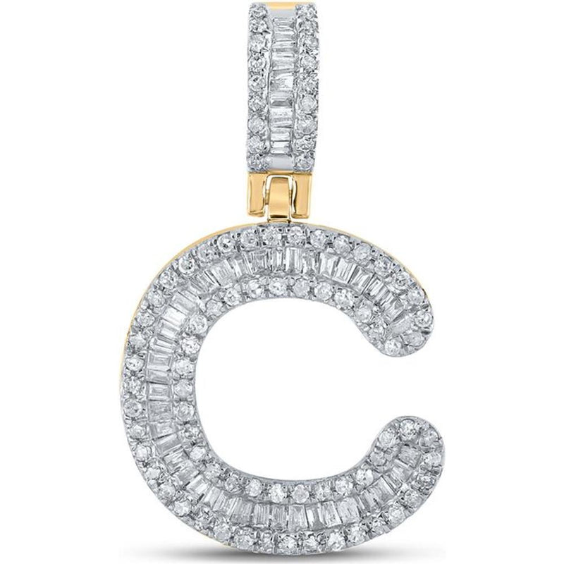 GND 10K Yellow Gold Baguette and Round Diamond 'C' Initial Letter Pendant - 1/2 Carat Total Weight