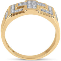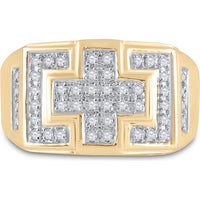 Embrace the brilliance of exquisite treasures in this stunning 10K Yellow Gold Round Diamond Cross Cluster Ring, where timeless elegance meets modern design. Crafted with precision, this luxurious piece showcases a bold geometric cross pattern, intricately pave-set with 1/3 carat total weight of sparkling round diamonds. Each diamond is carefully selected for its brilliance, and the pave setting ensures they shimmer with every movement, capturing light from all angles.