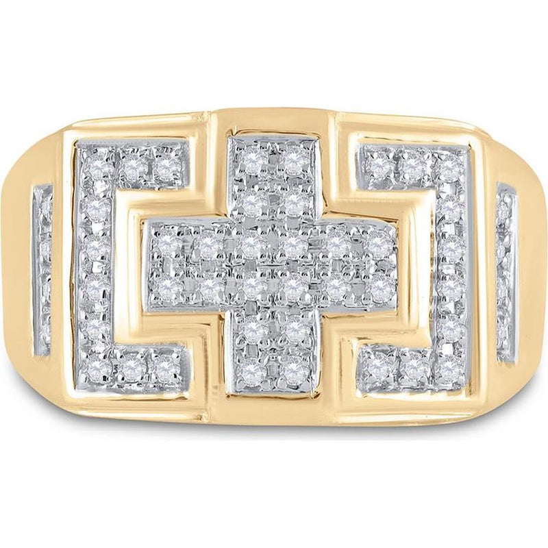 GND 10K Yellow Gold Cross Cluster Ring with Pave-Set Round Diamonds - 1/3 Total Carat Weight