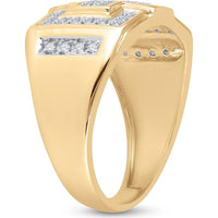 The 10K yellow gold band, with its warm, rich hue, beautifully complements the icy radiance of the diamonds, creating a striking contrast that exudes both strength and sophistication. The ring's substantial design, with a 4.20-gram weight, offers a confident, commanding presence on the finger, making it a perfect statement piece for those who appreciate the fusion of tradition and contemporary flair.