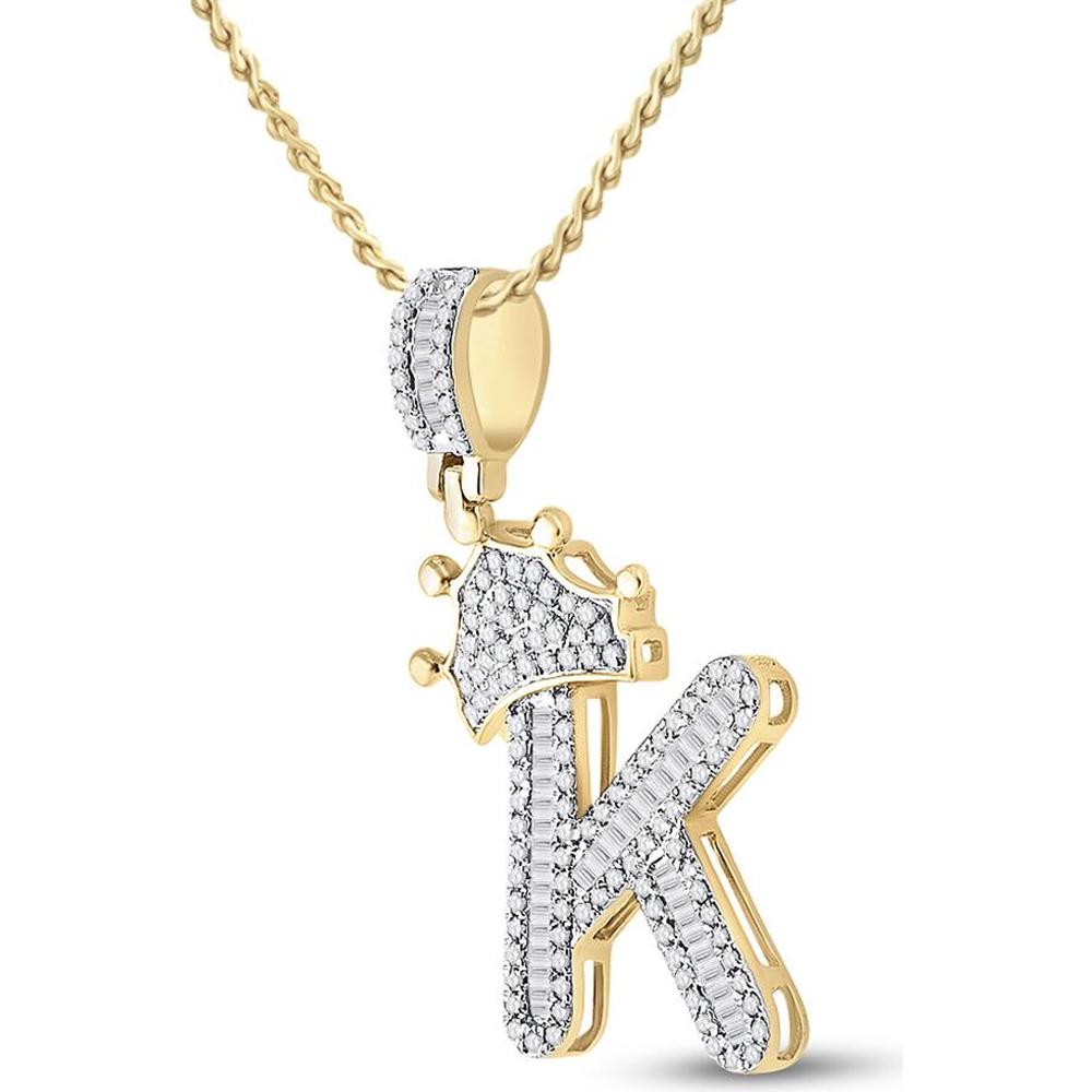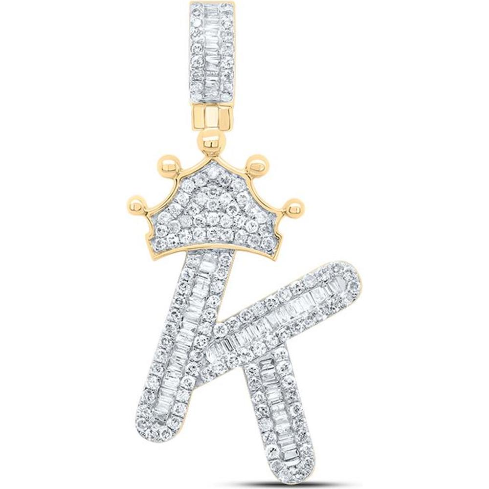 GND 10K Yellow Gold Crown K Letter Pendant with Channel-Set Baguette and Pave Diamonds - 5/8 Carat Total Diamond Weight