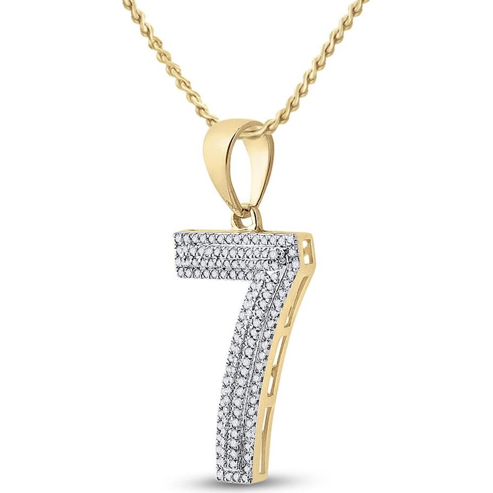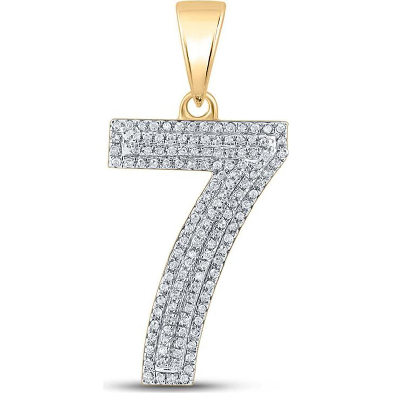 GND 10K Yellow Gold Number 7 Charm Pendant with Pave-Set Round Diamonds - 0.40 Carat Total Diamond Weight