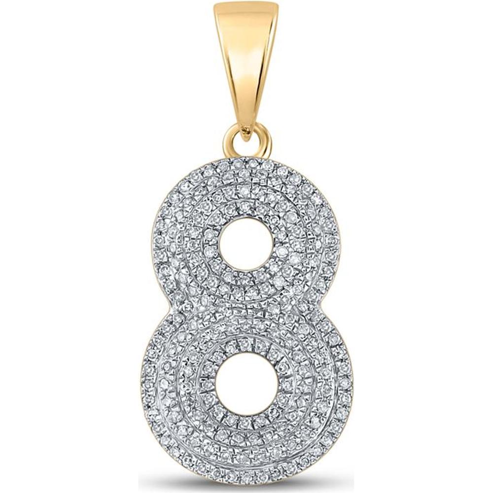 GND 10K Yellow Gold Number 8 Charm Pendant with Pave-Set Round Diamonds - 0.55 Carat Total Diamond Weight