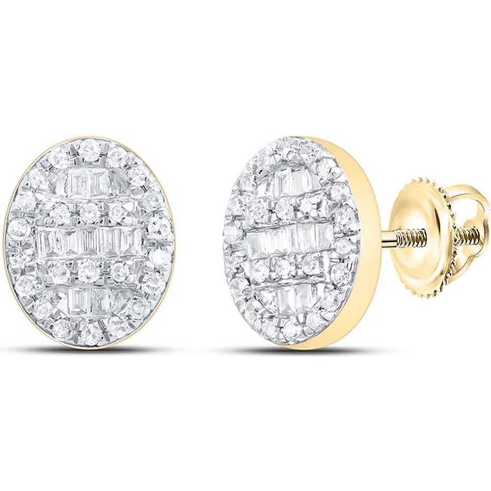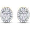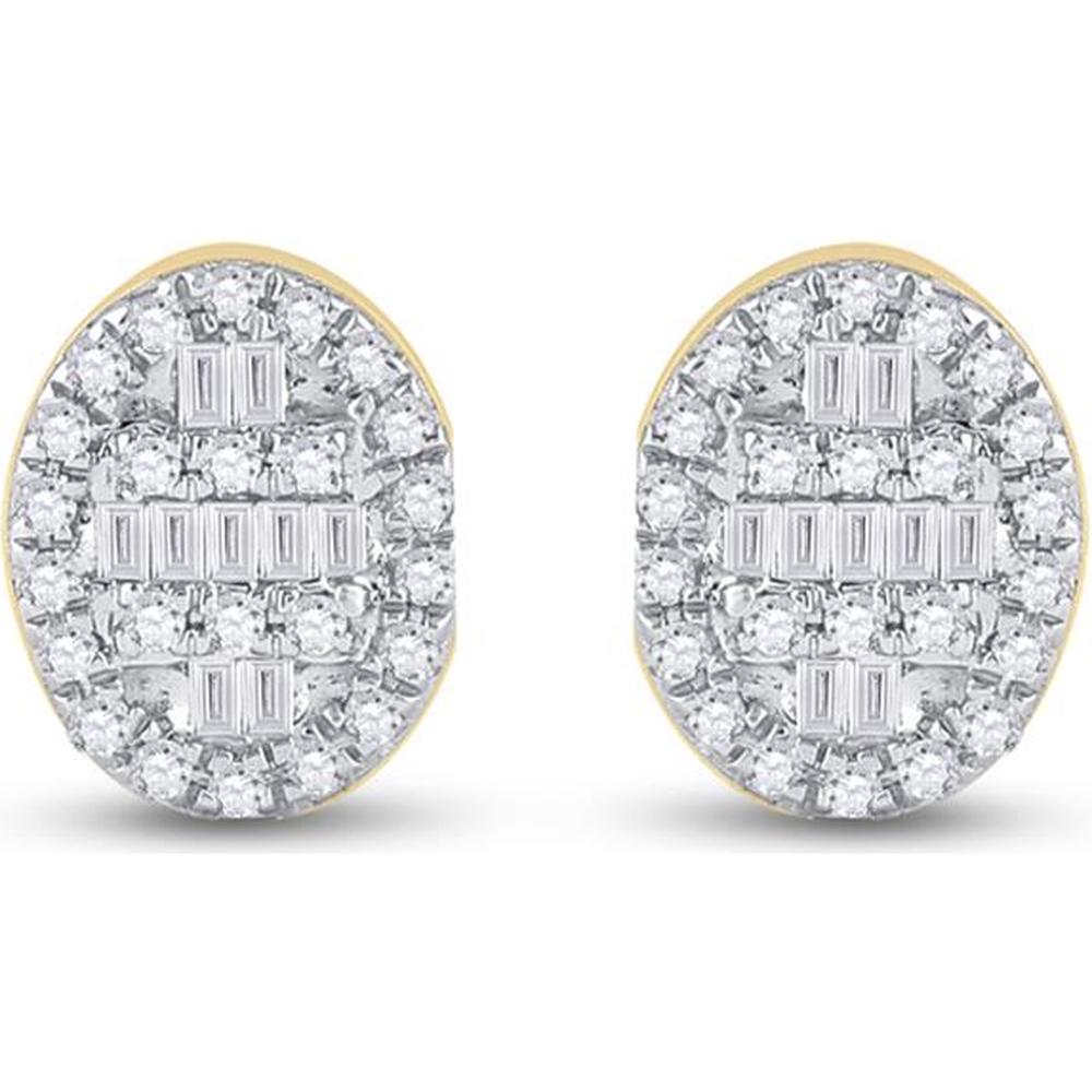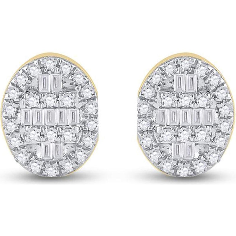 GND 10K Yellow Gold Oval Cluster Earrings with Channel-Set Baguette and Pave-Set Round Diamonds - 1/4 Total Diamond Weight