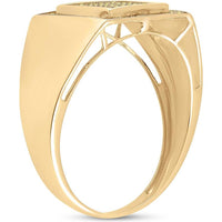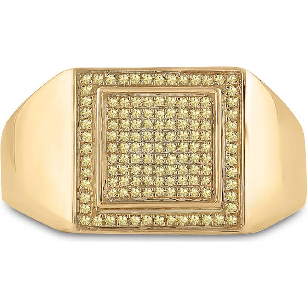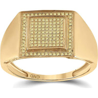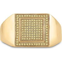 Admire the beauty of masterful craftsmanship in this striking 10K Yellow Gold ring, a piece designed to make a bold yet sophisticated statement. The allure of yellow diamonds is captured magnificently in the square cluster setting, where numerous prong-set round diamonds create a mesmerizing display of brilliance and luxury. Each diamond has been meticulously selected for its rich, golden hue, enhancing the overall warmth and elegance of the ring.