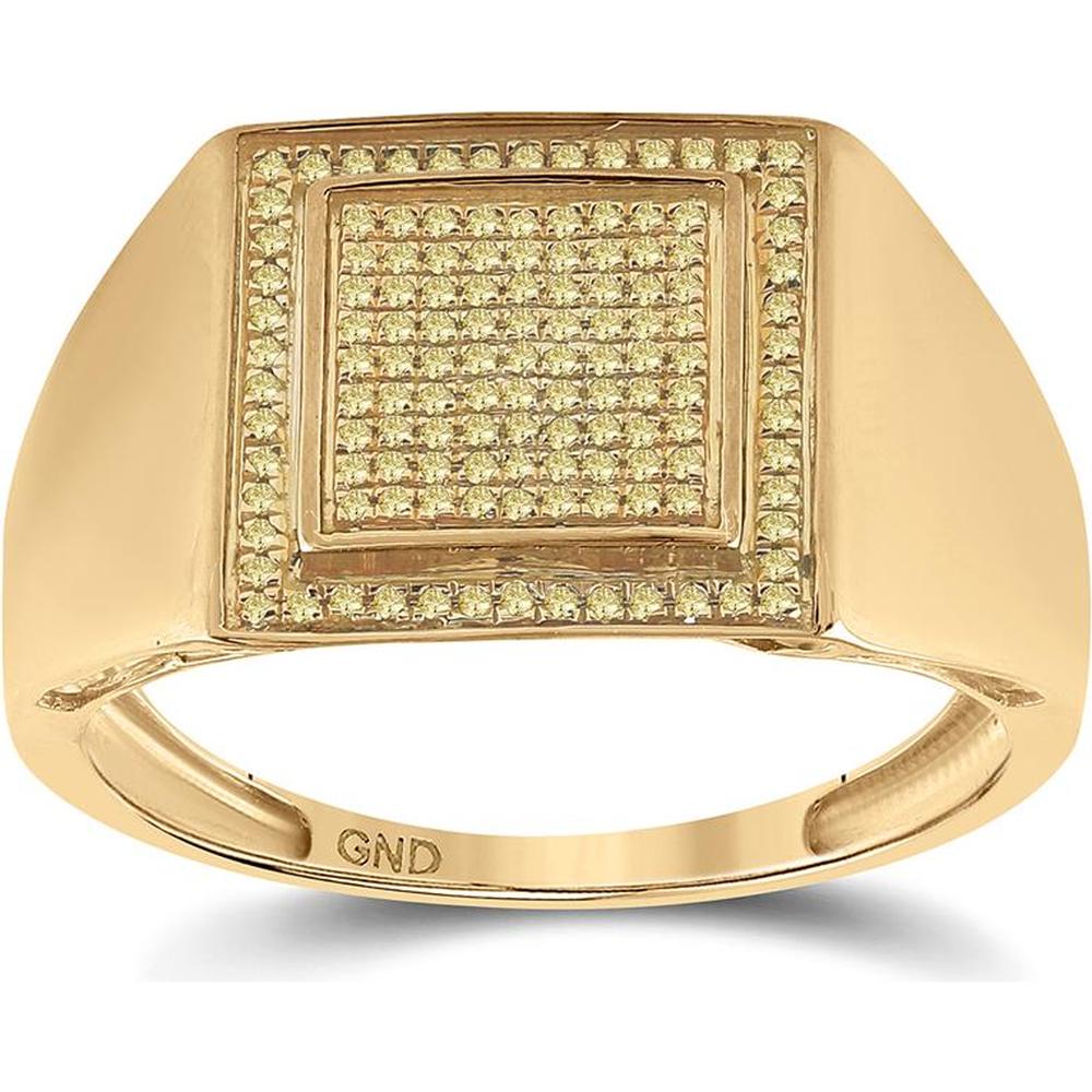 GND 10K Yellow Gold Ring with Prong-Set Round Yellow Diamonds in Square Cluster - 1/4 Total Carat Weight