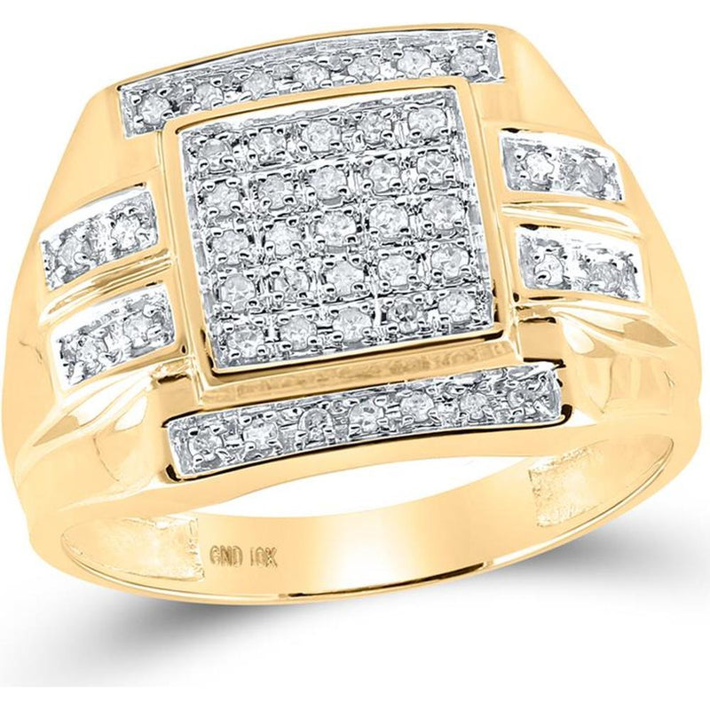 GND 10K Yellow Gold Round Diamond Square Cluster Ring - 1/3 Total Carat Weight