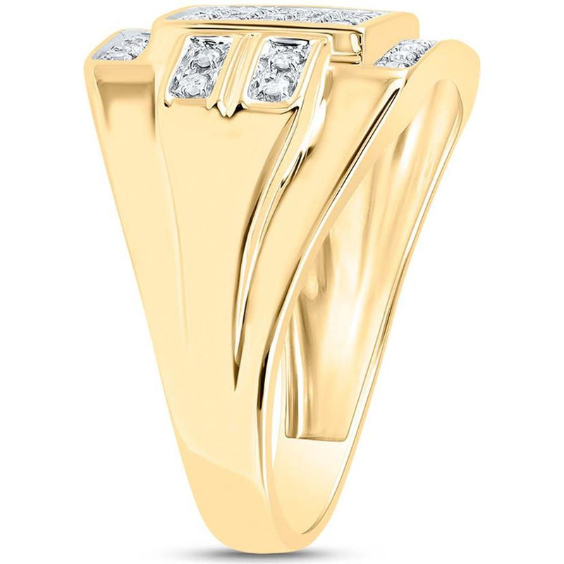 Crafted from 10K yellow gold, this ring offers a perfect balance of classic warmth and modern sophistication. The square cluster design is flanked by additional diamond accents, ensuring that this piece shines from every angle. The substantial gold band is both sturdy and stylish, providing a comfortable fit while exuding an air of undeniable opulence. This ring is more than just an accessory—it's a statement of confidence, a celebration of strength, and a testament to enduring love.