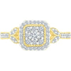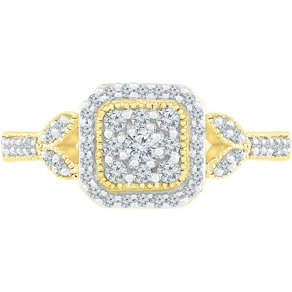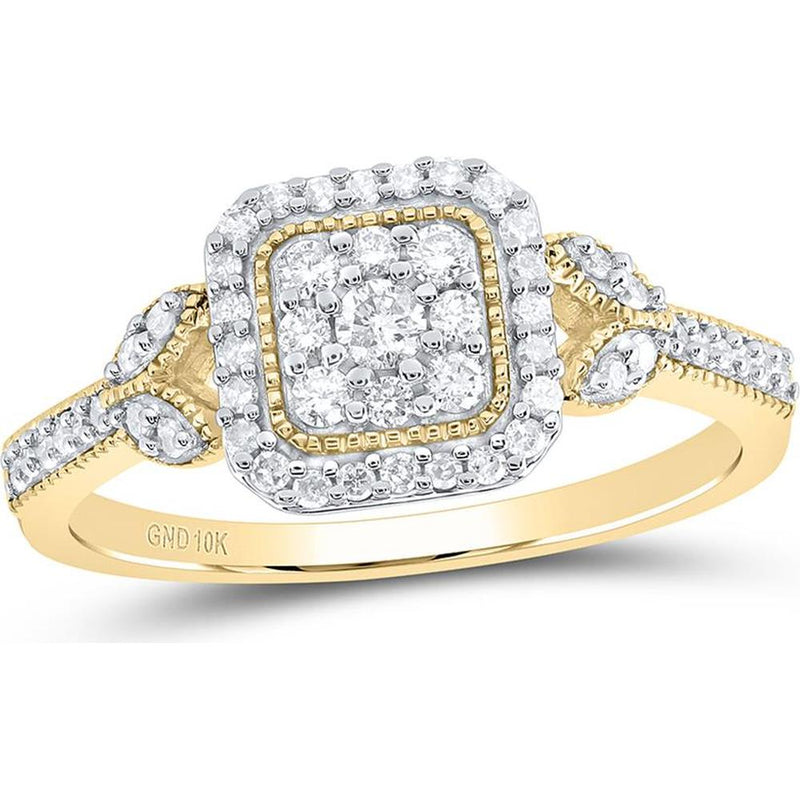 GND 10K Yellow Gold Round Diamond Square Halo Ring with Milgrain Detail - 1/3 Total Carat Weight