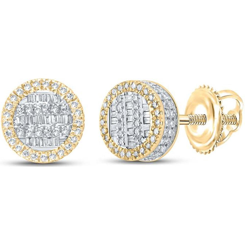 GND 10K Yellow Gold Stud Earrings with Channel-Set Baguette and Pave-Set Round Diamonds - 5/8 Carat Total Diamond Weight