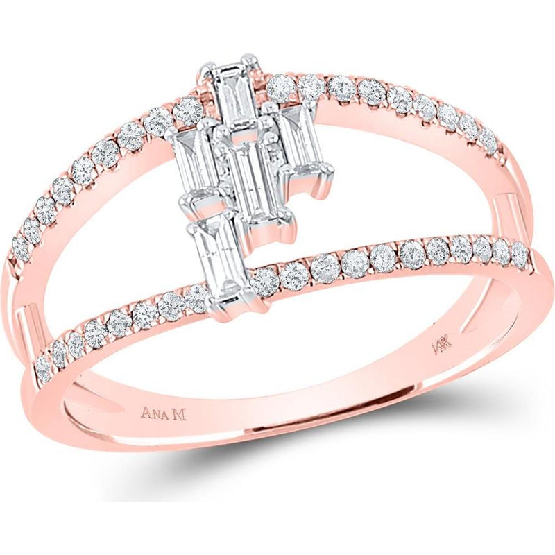 GND 14K Rose Gold Double Band Ring with Prong-Set Baguette and Round Diamonds - 1/3 Carat Total Diamond Weight