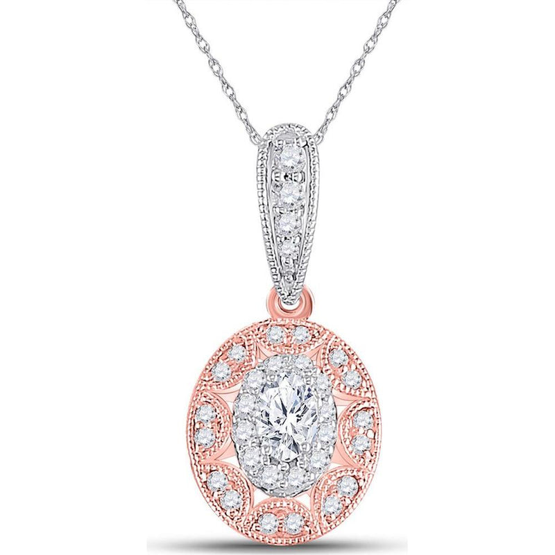 GND 14K Two-Tone Gold Oval Diamond Vintage Halo Pendant - 0.38 Carat Total Diamond Weight