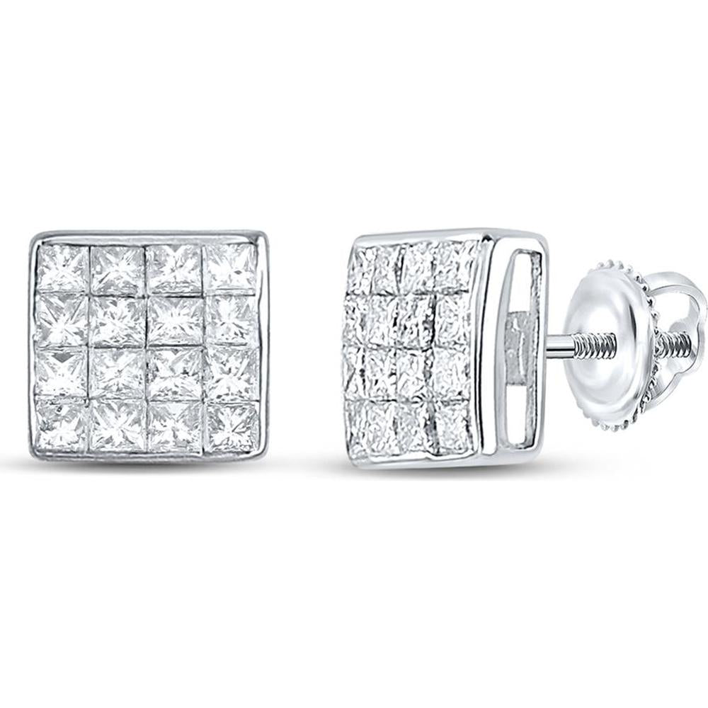 GND 14K White Gold Princess Diamond Square Stud Earrings - 3/8 Total Carat Weight