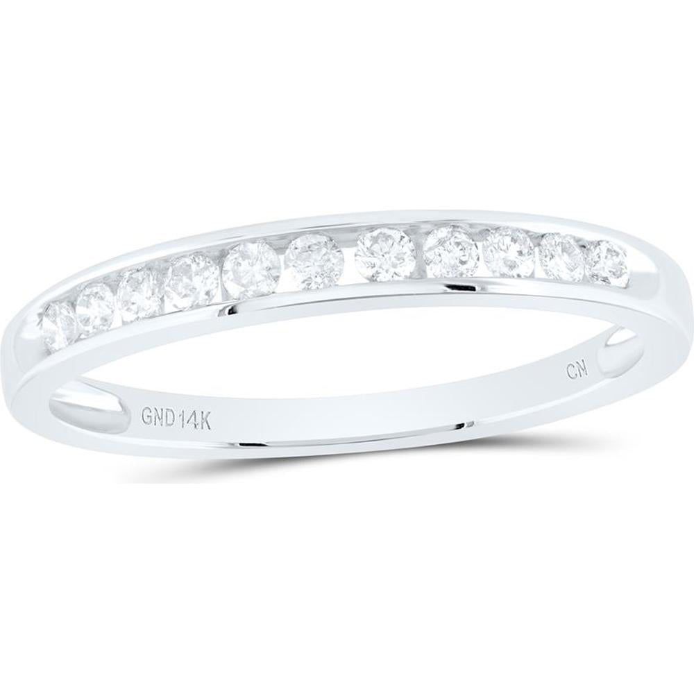 GND 14K White Gold Round Diamond Single Row Fashion Band Ring - 0.24 Carat Total Diamond Weight