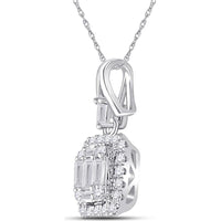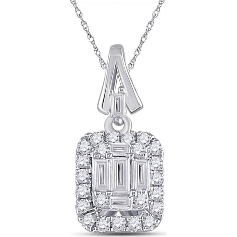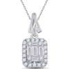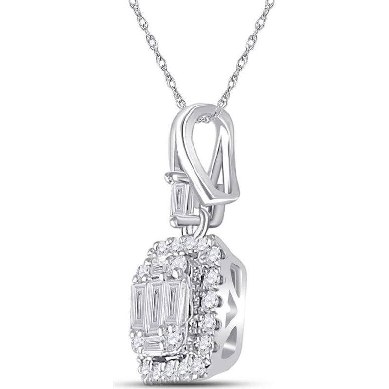 GND 14K White Gold Square Cluster Pendant with Channel-Set Baguette and Pave Round Diamonds - 1/4 Carat Total Diamond Weight