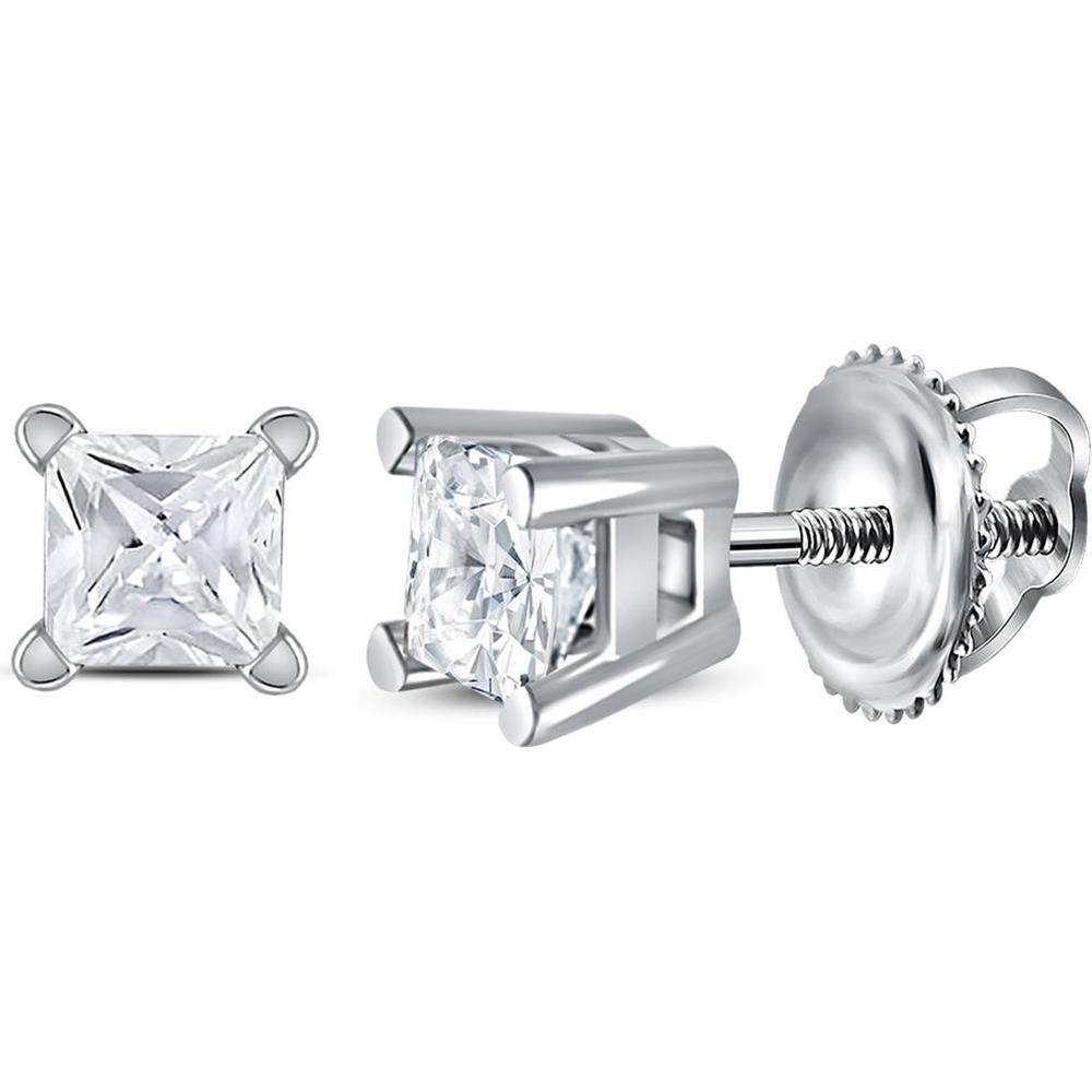 GND 14K White Gold Unisex Princess Diamond Solitaire Stud Earrings - 0.25 Carat Total Diamond Weight