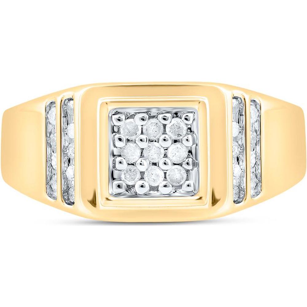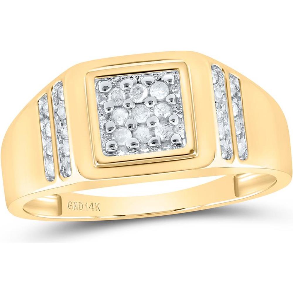 GND 14K Yellow Gold Men's Square Cluster Ring with Round Prong and Channel Set Diamonds - 1/4 Carat Total Diamond Weight