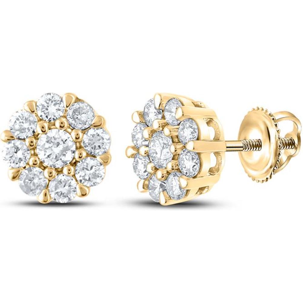 GND 14K Yellow Gold Round Diamond Cluster Earrings - 0.68 Carat Total Diamond Weight