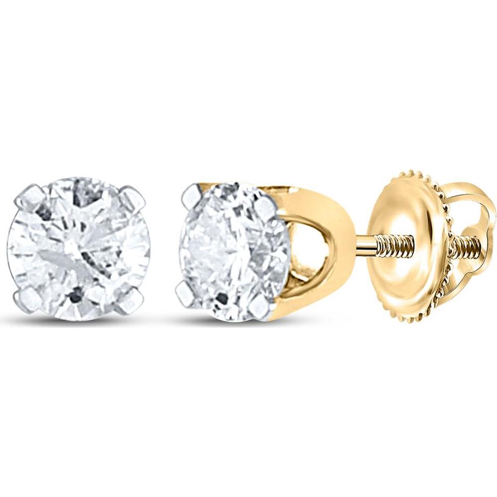 GND 14K Yellow Gold Round Diamond Solitaire Earrings with Screw-Back - 1/4 Carat Total Diamond Weight