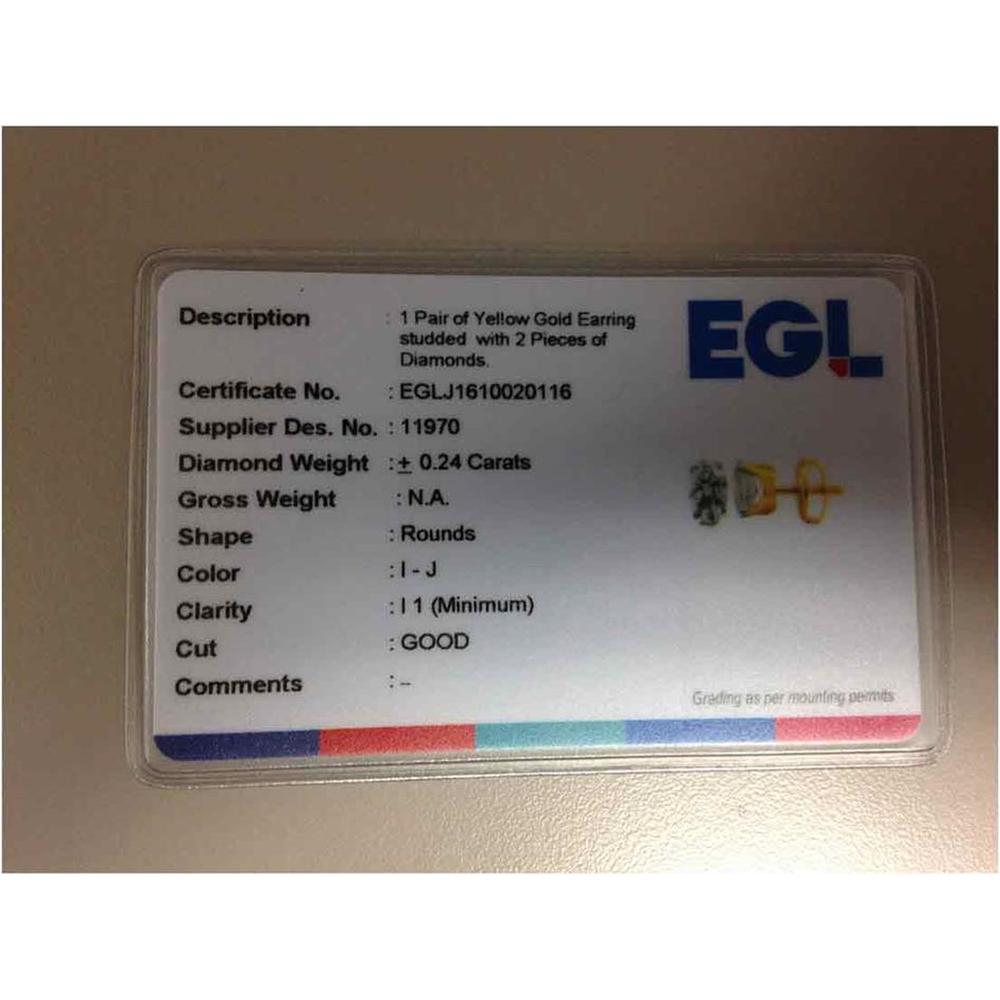Revel in the splendor of opulent artistry with these 14K Yellow Gold Round Diamond Solitaire Earrings. Designed to exude an air of timeless elegance, these earrings feature brilliant round diamonds, meticulously prong-set to showcase their breathtaking sparkle. Each diamond, weighing approximately 0.125 carats for a total carat weight of 1/4 carats, captures the light with a mesmerizing radiance that draws admiration from every angle.