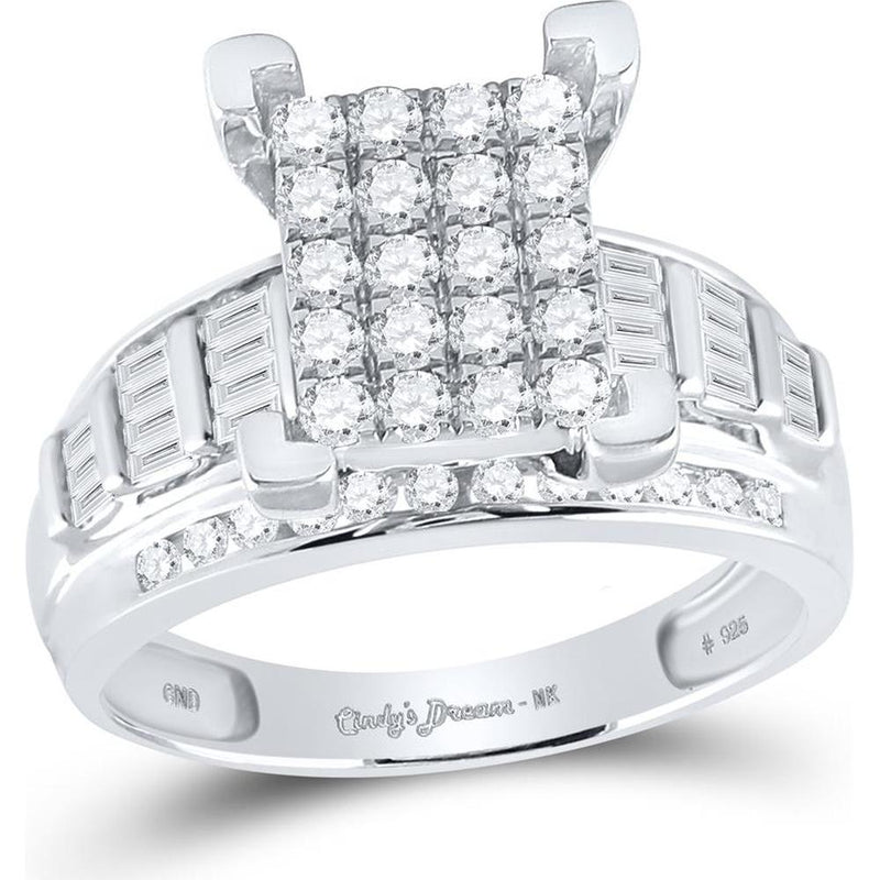 GND Sterling Silver Bridal Engagement Ring with Pave-Set Round and Channel-Set Baguette Diamonds - 7/8 Total Carat Weight