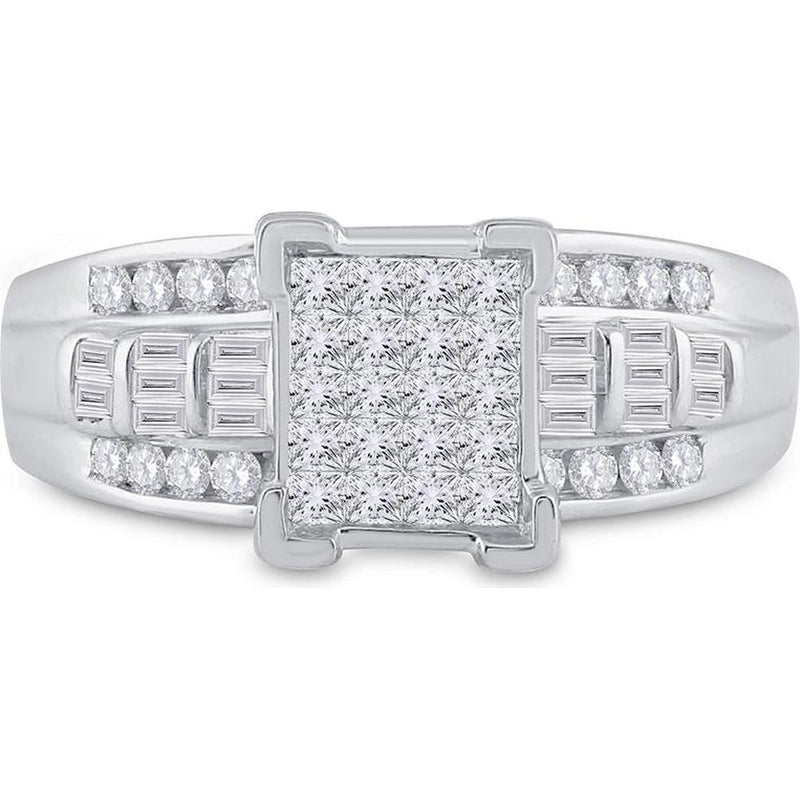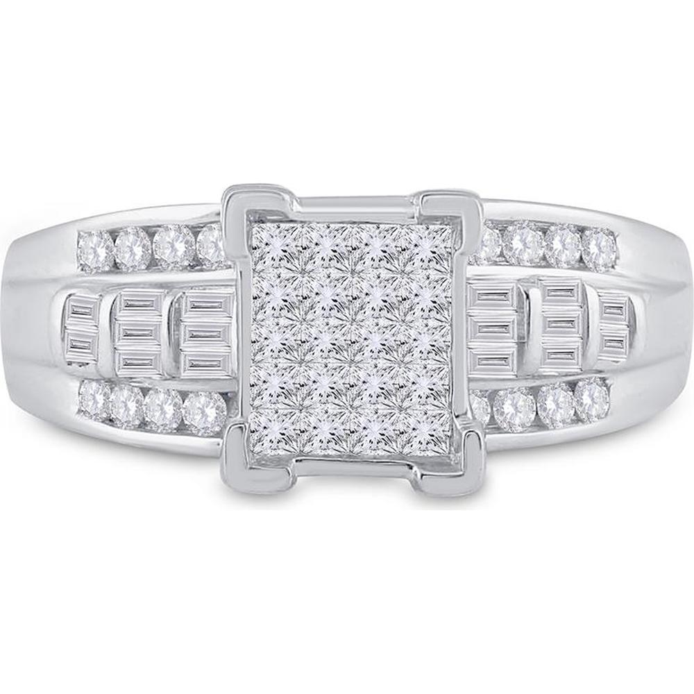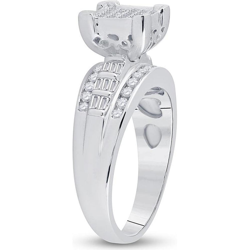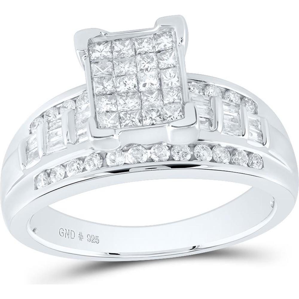 GND Sterling Silver Princess Diamond Cluster Bridal Engagement Ring - 0.75 Carat Total Diamond Weight
