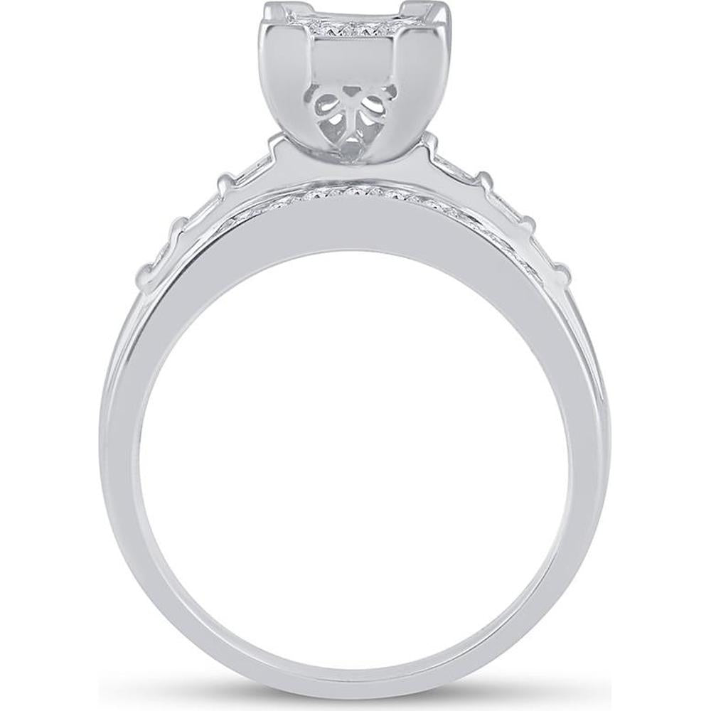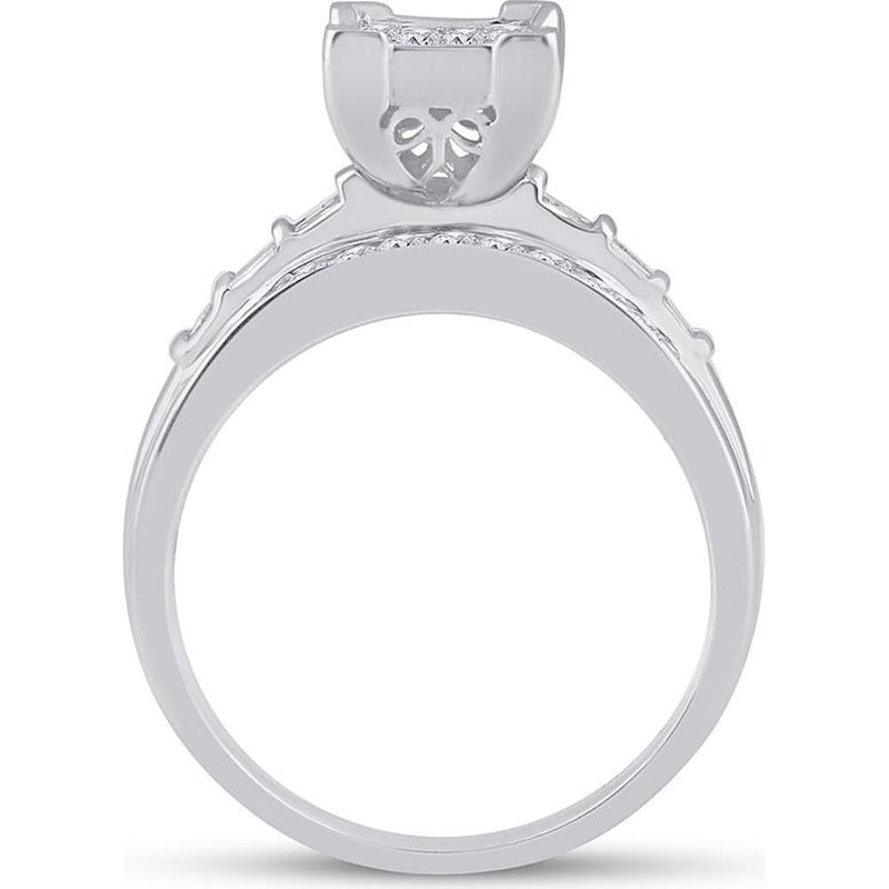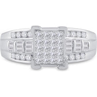 Celebrate the splendor of timeless artistry in this Sterling Silver Princess Diamond Cluster Bridal Engagement Ring. This magnificent piece captures the essence of love and commitment, making it the perfect symbol of an everlasting bond. The central feature of this ring is the dazzling princess-cut diamond cluster, invisibly set to create a seamless and breathtaking surface of sparkle. With a total carat weight of 3/4, the diamonds radiate a brilliant light, reflecting the love that it represents.