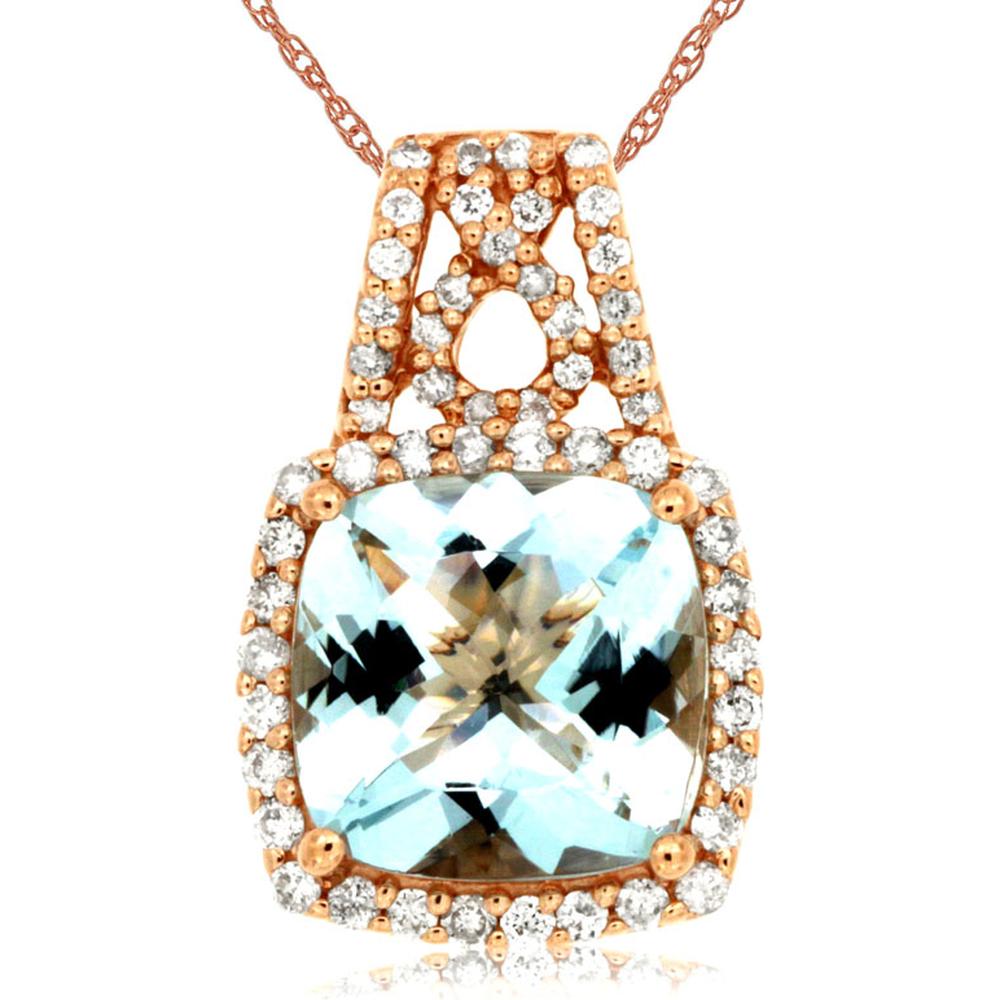 Hone the harmony of heritage and haute couture with our 14K Rose Gold Aquamarine & Diamond Pendant. Crafted to evoke timeless elegance, this pendant features a captivating 1.90 carat aquamarine in a cushion cut, exuding a serene azure hue reminiscent of tranquil seas. Encircled by a halo of sparkling diamonds, totaling 0.23 carats, the aquamarine becomes the focal point of a piece that balances sophistication with allure.