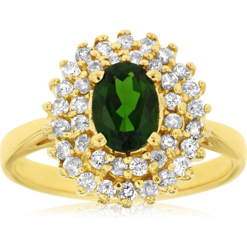 Luxurious 14K Yellow Gold Russalite and Diamond Oval Ring