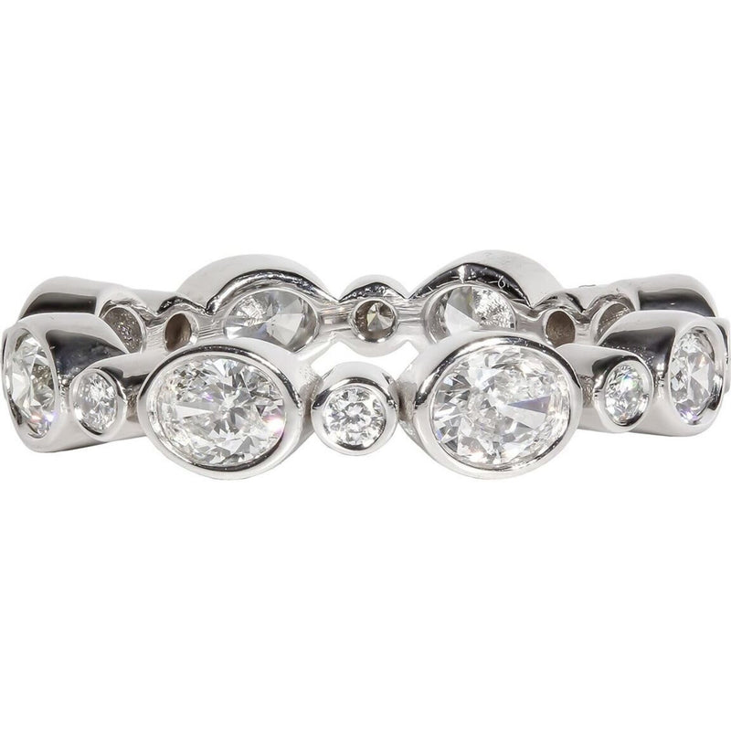 Elevate your style with the exquisite Ninacci 14K White Gold Eternity Band. This stunning piece of fine jewelry is a testament to timeless beauty and sophistication. Crafted with the utmost precision and care, this ring features a dazzling array of 16 bezel-set oval and round diamonds, totaling an impressive 2.07 carats.