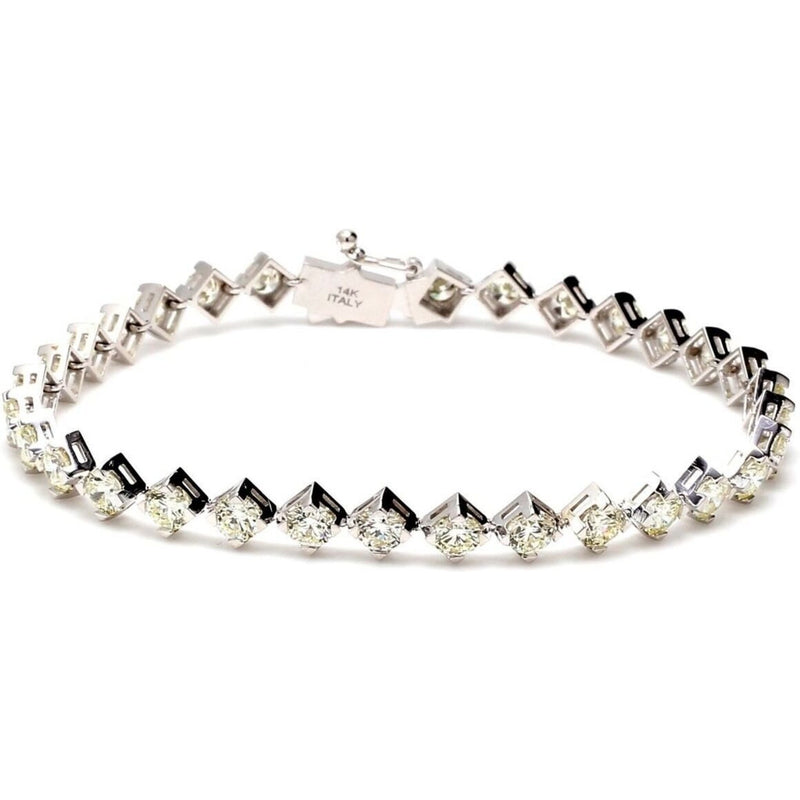 Ninacci 14K White Gold 6.75" Tennis Bracelet with Sideways Prong-Set Round Diamonds - 5.99 Carat Total Diamond Weight