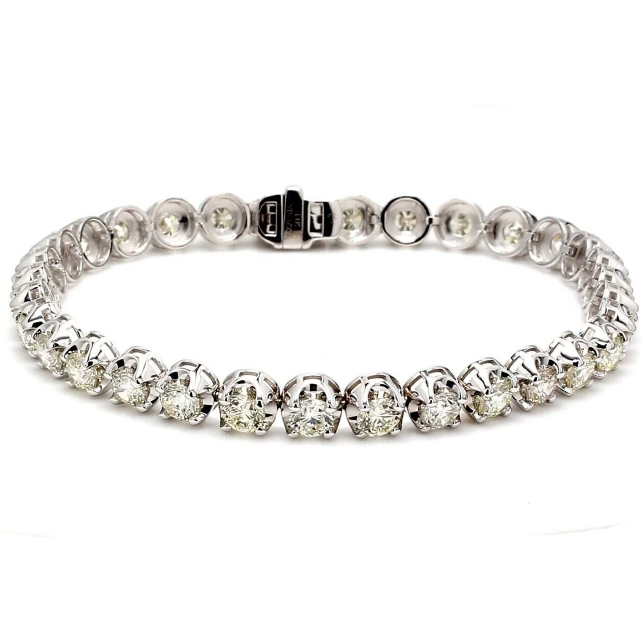 The brilliance of these diamonds is unparalleled, reflecting the fire and passion of your relationship. As your loved one wears this breathtaking bracelet, each diamond tells a story of your enduring commitment and affection. The 14K white gold setting adds a touch of modernity to the classic tennis bracelet design, creating a harmonious blend of tradition and contemporary style.