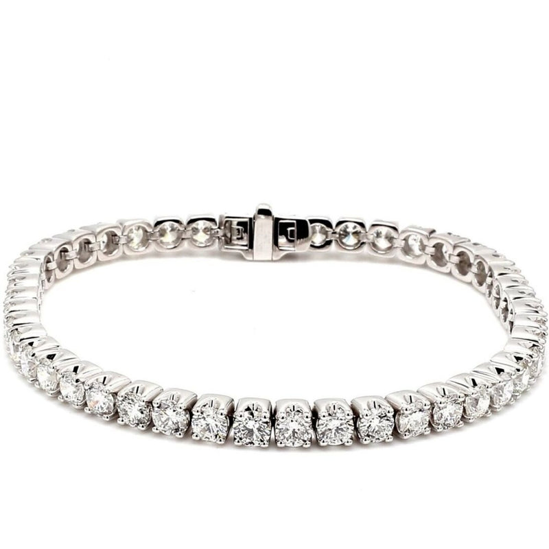 Ninacci 14K White Gold 7" Tennis Bracelet with 4-Prong Set Round Diamonds - 6.97 Carat Total Diamond Weight