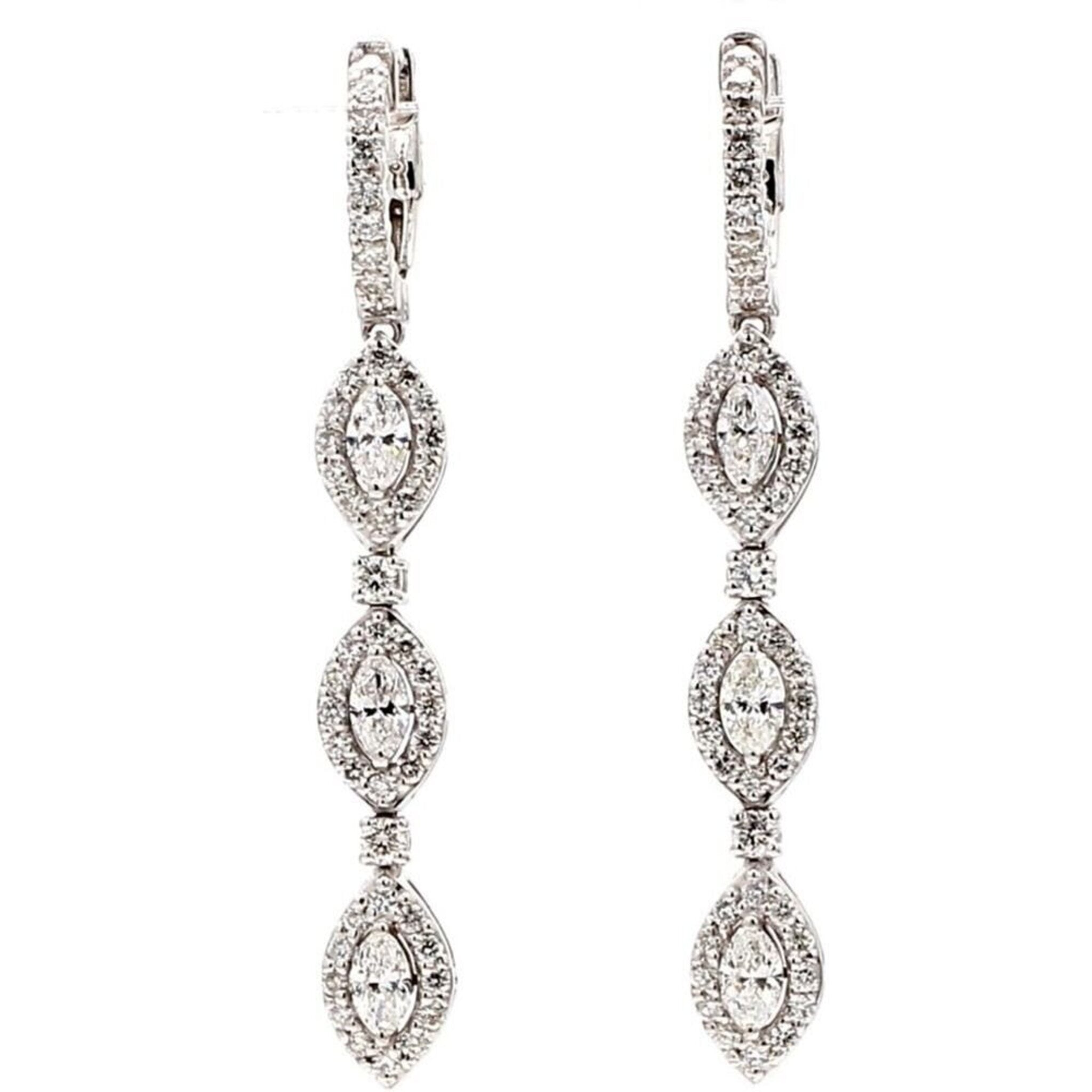 Ninacci 14K White Gold Dangling Earrings with 1.96 Carats Marquise and Round Diamonds